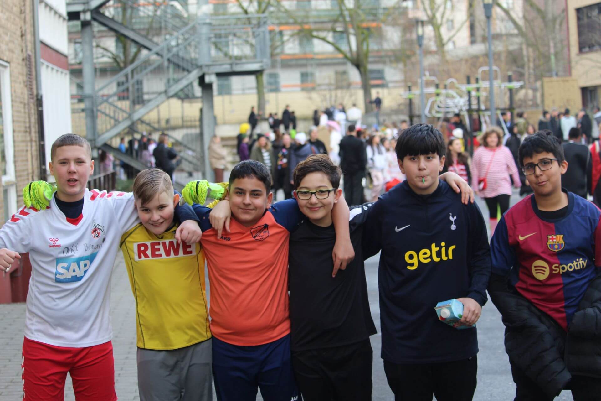 Für unsere Jüngsten war die zweite Etage des Altbaus am Weiberfastnachtstag ein wahres Karnevalsparadies! In den Klassenräumen der Stufe 6 warteten ein Spieleraum, ein Café und ein Karaokeraum auf die gut gelaunten Jecken. Im Stylingraum wurde geschminkt, verkleidet und sogar temporäre Tattoos verteilt. Die Mensa wurde kurzerhand zur Disco, wo die Schüler*innen zu ihren Lieblingssongs tanzten. Ein Highlight war der Kostümwettbewerb um 10:50 Uhr. Hier präsentierten die mutigsten Karnevalsfans ihre fantasievollen Outfits. Die Jury, bestehend aus Frau Van Ravenstein und den Moderatorinnen Frau Seier und Frau Christoph, kürte die kreativsten Verkleidungen.
