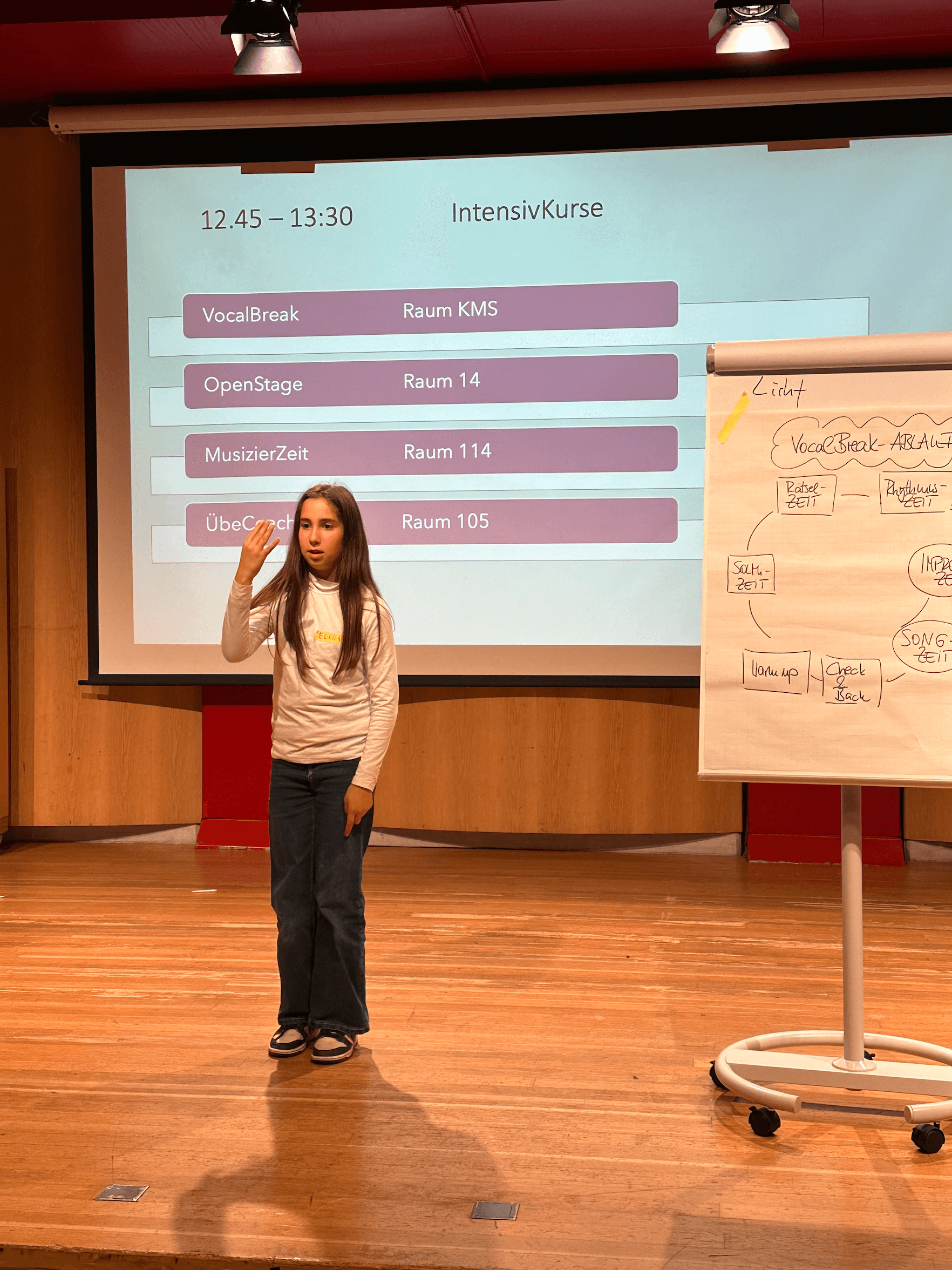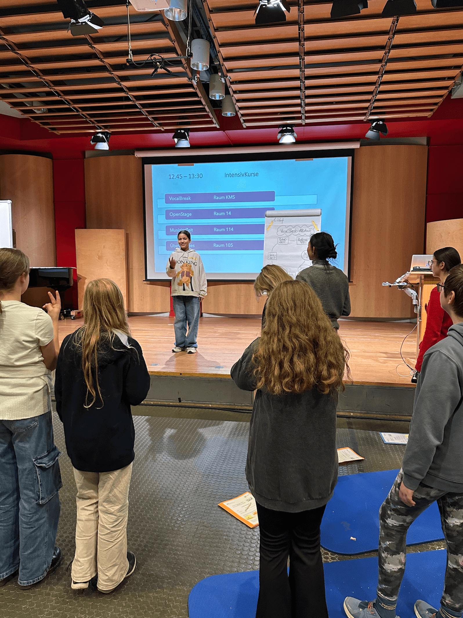 In spannenden Workshops, die von erfahrenen EMSA-Coaches geleitet wurden, konnten die Schülerinnen ihr Wissen in Musik und Pädagogik erweitern. Besonders wertvoll war der Erfahrungsbericht von Cansu, einer Schülerin aus der EF, die als VocalBreak-Patin bereits aktiv ist. Ihre Einblicke und Tipps motivierten alle Teilnehmerinnen, sich mit Begeisterung auf ihre Rolle als Mentor:innen vorzubereiten.